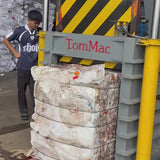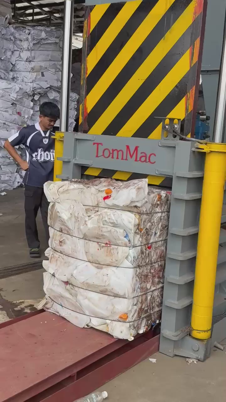 Machine is full automatic and all parts operation is auto; Machine can feeding into with conveyor or pipeline; Customer can customized pressure and bale size; High strength output door, hydraulic automatic operating conveniently and safety. Configures with PLC program and electric button control Equipped with automatic feeding detection, can compress bale automatically. The baling length can be set at random, and provides bundling reminder device. Block size and voltage can be customized according to customers’ reasonable requirements. Safety interlock device, Simple Operation. Mainly used to packing waste paper, carton, cardboard, plastic, PET bottle, hay, film etc.